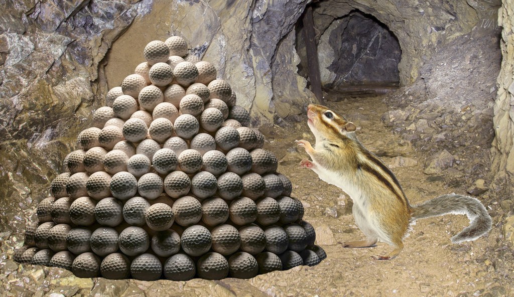 We were still waiting to tee off, so my mind drifted further from my golf game, to Wimbledon, and then to the squinnies. This was their revenge, I thought. To annoy the invading hordes of golfers that trample their home turf every spring and summer, they steal and collect their golf balls, moving them around with this ingenious tunnel system. I imagined them sitting around in their giant underground cavern, laughing, with hundreds of Titelists, TaylorMades, Srixons, and Bridgestones stacked to the top—monuments to their rodent gods.