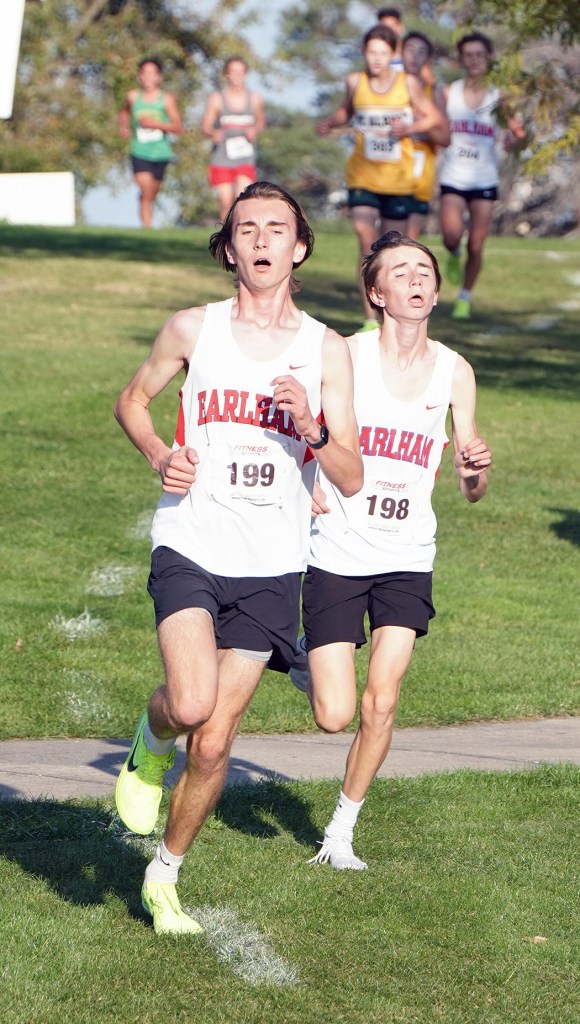While St. Albert finished 1st and 2nd, Carson Maly and Dawson Braet finished 3rd and 4th. Earlham’s next three runners made up the scoring difference. Donovan Braet was 5th, compared to the #3 Falcon runner, who was 7 seconds behind in 6th. Tiemeyer finished 7th and David Nichols was 10th, compared to St. Albert’s #4 and #5 runners, who were 12th and 14th, respectively. As they have been doing all season, the top five Cardinals finished in a tight grouping, just 38 seconds apart.