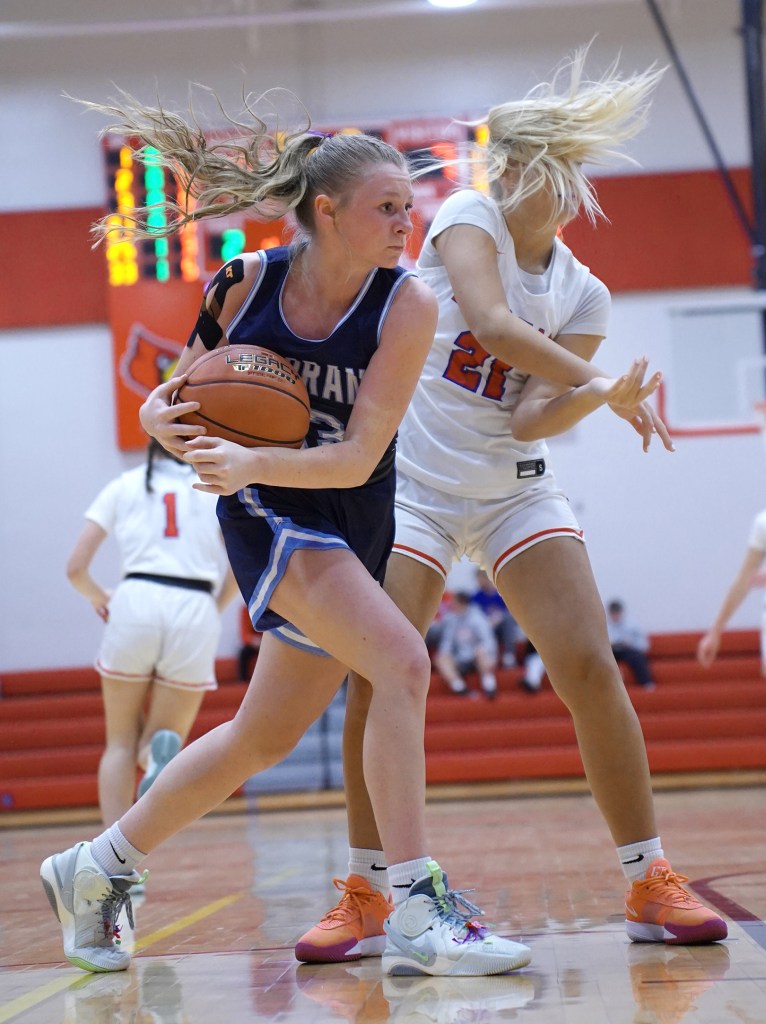 In a wild, up-and-down 1st quarter, the Cardinals forced 8 Panther turnovers and committed 7 of their own. Darby Moore and Nixt connected for 3-pointers in the first 3-1/2 minutes and the Cards led, 7-5. Fagan’s 3 near the 4-minute mark started a 12-0 run for the Cards. Mackenzie Harger dished to Fagan for a layup, then Kenna Harskamp made a layup and a 3-pointer. After Moore made a running 1-hander from the free throw line, the Cards led, 19-5, with 2:16 to go. The Cards made 7 of 10 shots in the frame and led, 19-7, after 1.